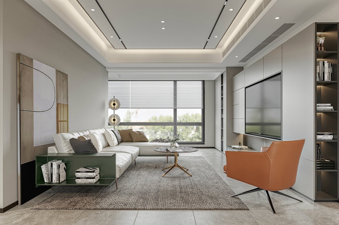 When designing the open space, exquisite furniture and clean lines are used. The open space brings maximum comfort to all designs, which not only meets the needs of daily life, but also embodies the aesthetics of art. All the spaces in the living room are not pretentious, and the elements of decoration and color are highly rationally reduced, showing the beauty of handwriting and the beauty of modern minimalism. The designer uses simple but not simple details to create a spiritual residential space. The methodical texture details of the interior are perfectly presented, combined with the embellishment of the interior, the overall sense of proportion tends to be perfect, and the material gives the whole space a high-level texture.