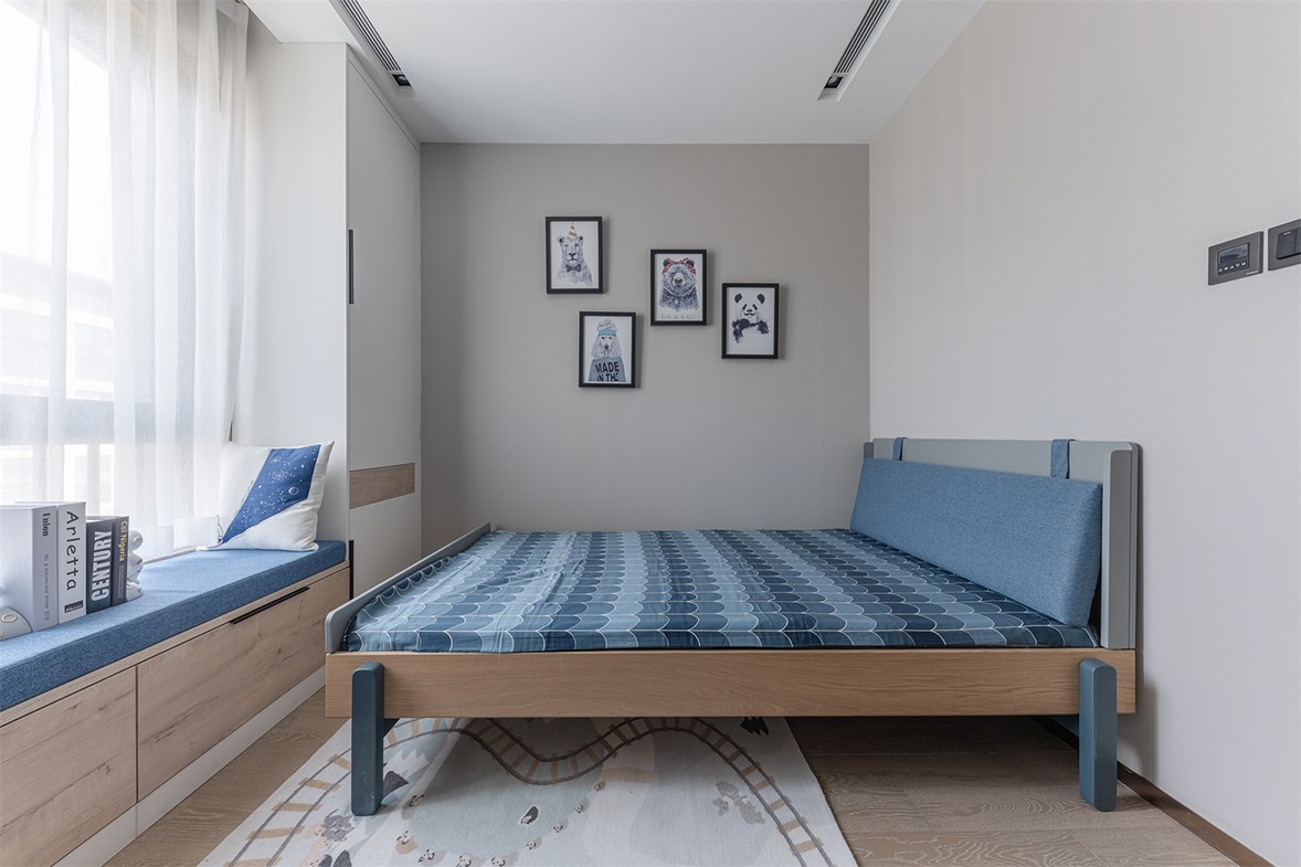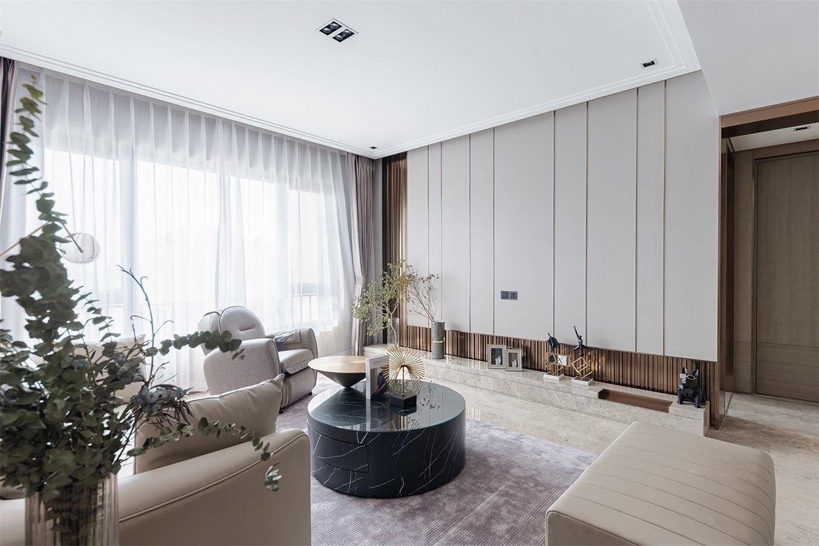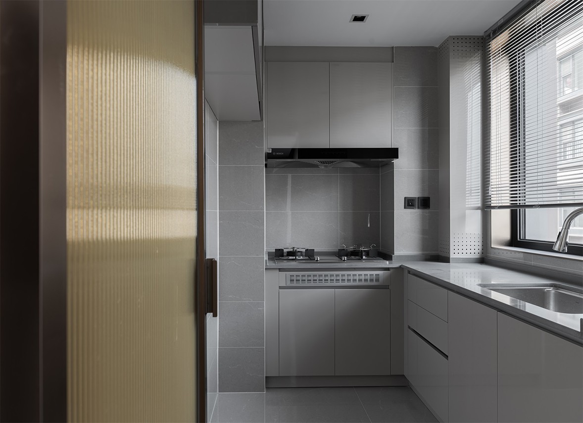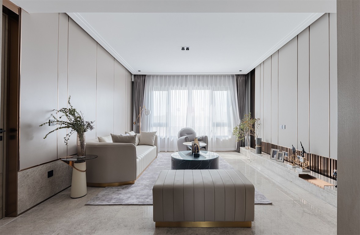 Fully open floor-to-ceiling balcony windows allow sunlight to fall in every corner of the living room. The decoration of green plants gives life full of vitality. The arched shape of the specially customized shoe cabinet is in harmony with the overall style. Weaken the tough lines of the door panel, make it smart and fashionable, and increase the sense of romance. The open kitchen, with an island design, is more convenient for daily use, enriches more life scenes, and increases family interaction. The background of the master bedroom is pink and green, with metallic lines embellished, retro and elegant. The exquisite wall lamp echoes the background shape, blending a delicate and romantic atmosphere into the space.