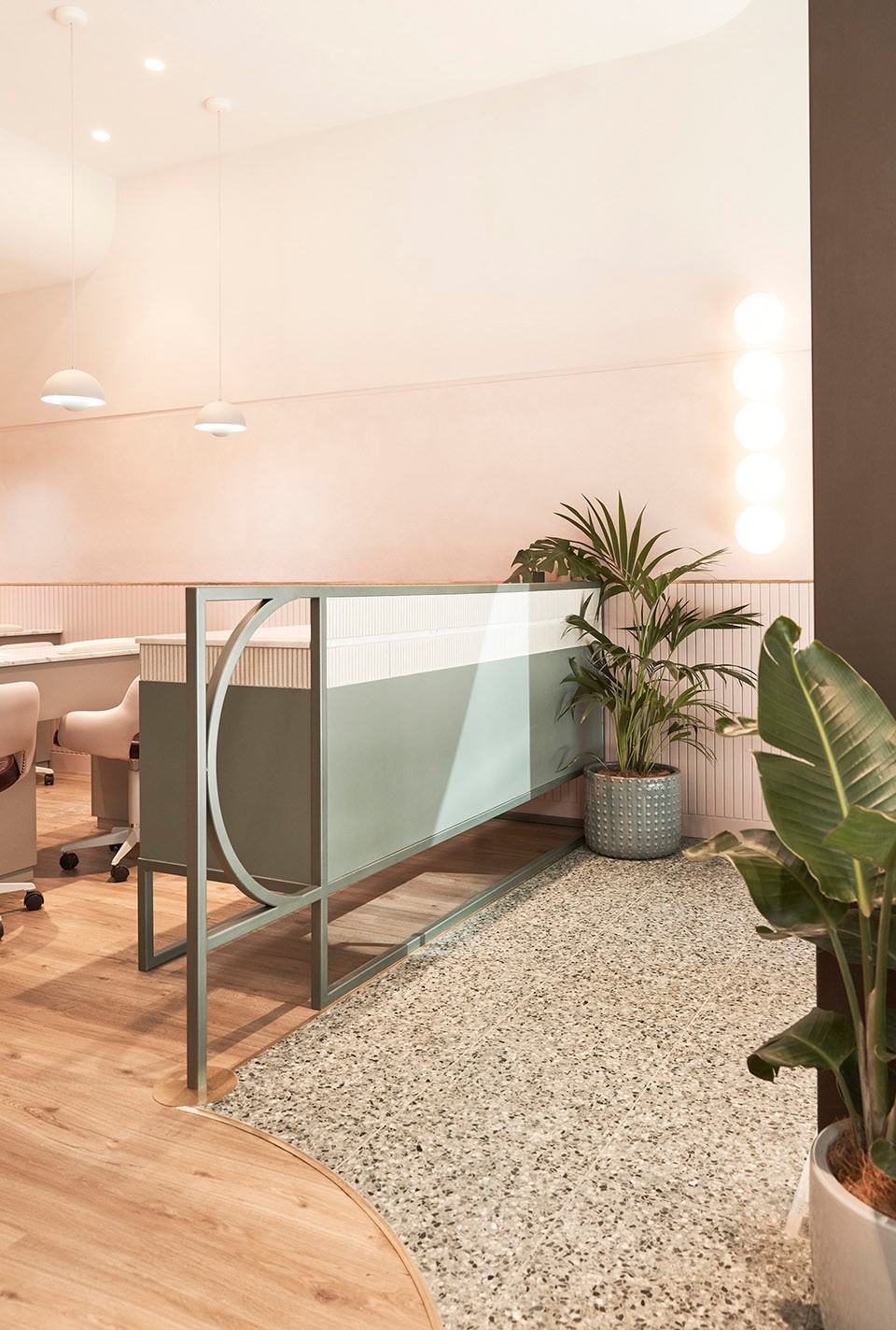Under the bustling city, under the glitz, modern people's lives are increasingly longing for simplicity and comfort. The design of the space is also eager to integrate through the separation and reorganization of the extremely simple line structure and color, so that people can feel the soft light and smooth shape in the extreme openness. The designer takes modernity, simplicity, softness and smoothness as the core clues of the whole design, and uses artistic design language to shape the quality of the space. The layout of the room expands with the curved shape of the building. The ceiling at the top, in a flowing and spreading form, resembles the dynamism of clouds and mist, which makes the interior of the space and the building shape and the outdoor tiers interconnect, merge and reflect. Guide visitors into other spatial areas.